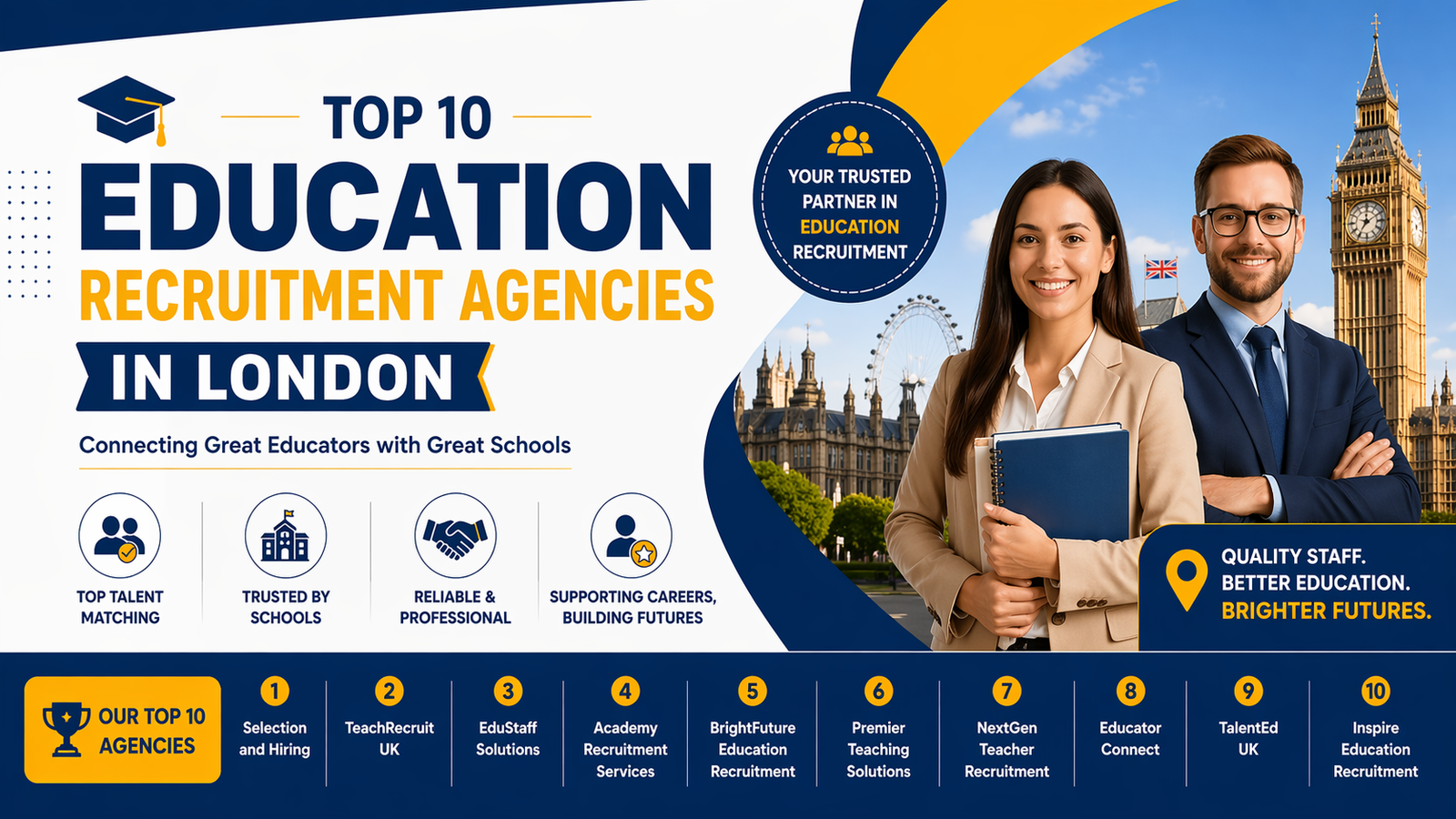 Top 10 Education Recruitment Agencies in London – Selection and Hiring London’s education sector is one of the most dynamic and competitive in the UK. For schools, colleges, and educational instit